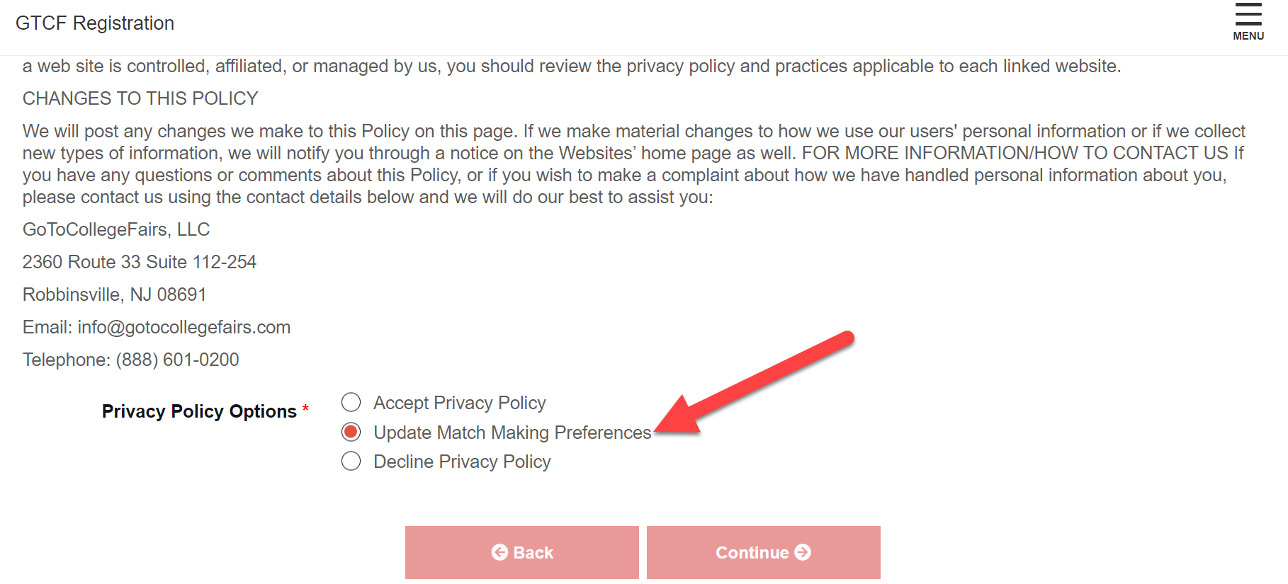 College Matchmaking® is the only service that can be opted-out during the registration process. Basic student data sharing is required for fair registration. This data will be shared with colleges, this is the core of our service offering. If you do not wish to share ANY data with colleges, please do not register for a college fair. You may certainly attend in-person fairs without registration and sharing of your barcode, however this barcode does expedite your fair experience. All students attending virtual fairs must be registered, for security purposes.