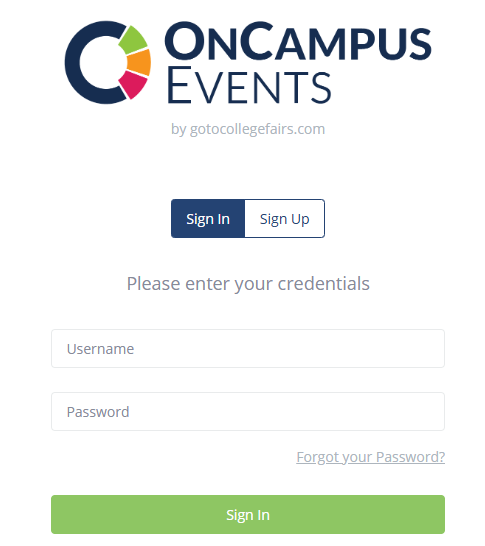 Go to the OnCampus Events Visitor Center and log in with your existing account credentials.