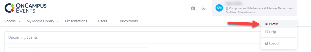 Click the 'OnCampus Events' logo in the top left corner to return to your dashboard. Upcoming Events View all future or recently passed events at a glance. Displayed in each event card is: Name of the event Event type (In-Person, Virtual, or both) ...
